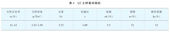 神木縣楊家畔坡村腰觀(guān)Q4黃土厚度約1m,Q3黃土厚度約15m,Q2厚度約10m,Ql黃土在溝底露頭3m。管道在腰觀(guān)r敷設長(cháng)度約60m ,理深約1.2m通過(guò)對該腰觀(guān)Q3和Q2黃土在不同含水率條件下的土樣進(jìn)行r物理力學(xué)性質(zhì)試驗,Q3和Q2黃土基本物理指標、其不同含水率的抗剪強度、結構強度。和干密度pd的變化關(guān)系見(jiàn)表1-5。