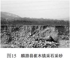 西二線(xiàn)甘陜段管道經(jīng)過(guò)地區受其經(jīng)濟活動(dòng)如采砂、 采石的影響, 其對管道敷設地段水土流失的影響更加強烈。 采石采砂引起管道穿越地區自然環(huán)境改變, 嚴重采石引起山體滑塌, 嚴重情況會(huì )引起管道斷裂,采石也造成管道穿越區域水土流失加劇。 如圖15。
