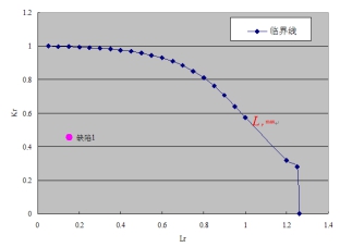 圖2 環(huán)焊縫缺陷1安全評定圖(假設缺陷長(cháng)度150mm、深度6mm)