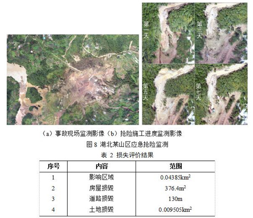 湖北某山區應急搶險監測如圖8所示,損失評價(jià)結果見(jiàn)表2。