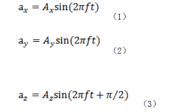 圖中X方向是水平方向,Y方向是豎直方向,Z方向是垂直于橋墩向外方向。對加速度曲線(xiàn)進(jìn)行分析,可以發(fā)現三個(gè)方向的振動(dòng)頻率都為1.8 Hz。為了簡(jiǎn)化問(wèn)題,將橋墩的振動(dòng)近似看成是簡(jiǎn)諧振動(dòng),其加速度方程為: