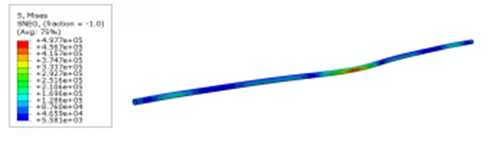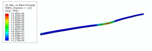 對管道距離橋墩最近的部位施加振動(dòng)加速度的約束,本模型中對應管道的中心部位。在振動(dòng)加速度驅動(dòng)下求解應力場(chǎng)和應變場(chǎng)的結果。