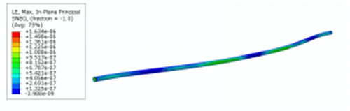 圖19和圖20是振動(dòng)狀態(tài)下的應變場(chǎng),最大應變值為1.6微應變,遠小于地質(zhì)沉降帶來(lái)的變形,因此可以忽略振動(dòng)所引起的變形量。