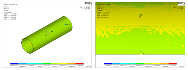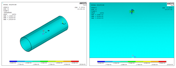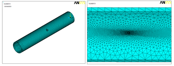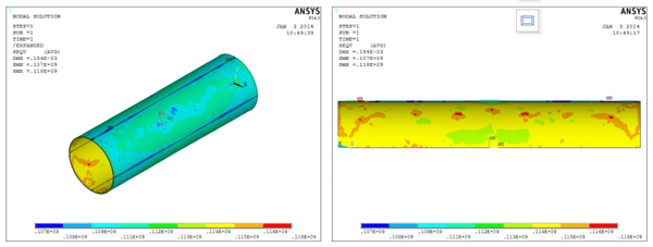 運用ANSYS軟件進(jìn)行海底管道有限元建模分析。該海底管道是單層管,海管內部產(chǎn)生較多的腐蝕凹坑,存在不同程度的內腐蝕現象。管道要受到內壓和外壓,故在有限元建模時(shí)對內管進(jìn)行建模,分析內管的受力情況。海底腐蝕缺陷管道的失效模式以應力失效準則來(lái)考慮。為計算精度準確且便于建模,根據其缺陷形狀,海底管道考慮用柱形來(lái)模擬[2-4]。