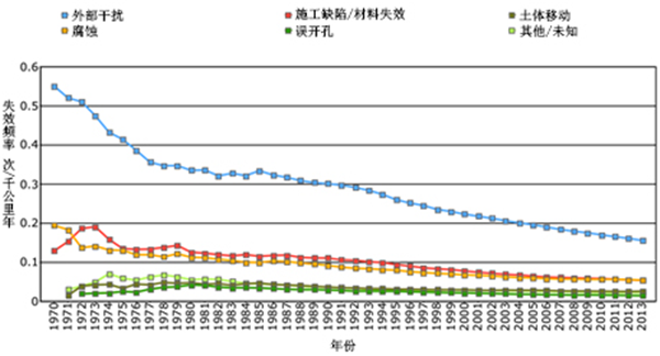 圖19 UKOPA歷年管道失效數量(1962-2014年)