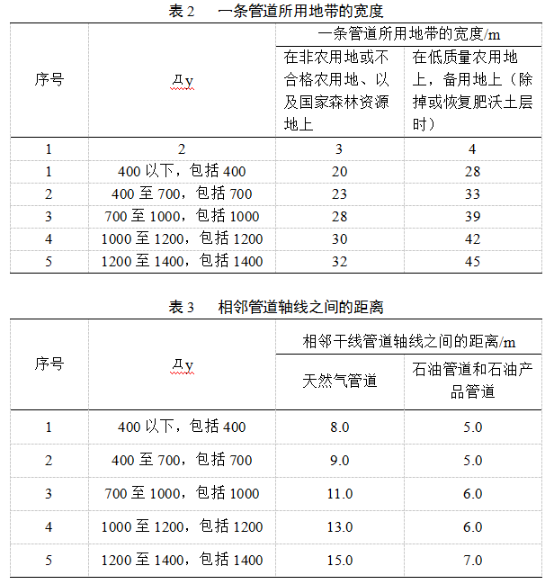 (2)當油和氣管道并行敷設時(shí),輸氣管道的相關(guān)參數決定并行間距;當輸氣管道并行敷設時(shí),并行間距由壓力高、管徑大的輸氣管道參數決定。