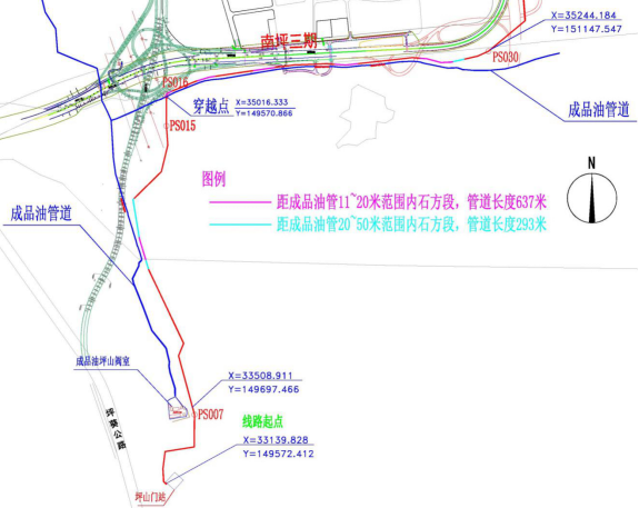 圖1 高壓管道與成品油管道平行敷設現狀