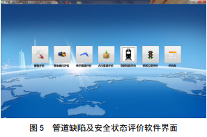 管道缺陷評價(jià)技術(shù)是確定管道維護方案的科學(xué)依據[7]。針對管道的體積類(lèi)缺陷、幾何變形類(lèi)及復合類(lèi)缺陷,調查研究國內外已有缺陷評價(jià)標準的適用性范圍及適用性,編制了一套管道缺陷評價(jià)技術(shù)規定文件及缺陷評估理論手冊,包括腐蝕、幾何凹坑、凹坑+腐蝕、機械劃傷缺陷評價(jià),同時(shí)也包括重車(chē)碾壓管道、管道懸空、特殊地段(穿越公路、鐵路)管道等的單項安全評價(jià)。開(kāi)發(fā)了管道缺陷及安全狀態(tài)評價(jià)軟件(圖 5),可對以上各種類(lèi)型的缺陷及特殊狀況進(jìn)行評價(jià),根據評價(jià)結果對管道的缺陷修復給出建議。