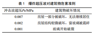 天然氣爆炸事故危害主要來(lái)源于爆炸產(chǎn)生的爆炸超壓波,主要危害對象為建筑物,超壓波對建筑物的危害準則如表 1所示。