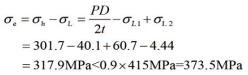 依據規范[5,6]要求,管道軸向應力和當量應力均不應超過(guò)0.9倍屈服應力,即0.9×415 MPa=373.5 MPa。當最大土體位移分別為1 m和2 m時(shí),應力校核過(guò)程如下。