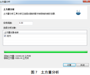 用戶(hù)通過(guò)在三維場(chǎng)景中畫(huà)多邊形的方式生成任意區域的等高線(xiàn)數據,可以隨意調整等高距而得出不同的等高線(xiàn)圖,并可將系統分析得出的等高線(xiàn)圖以矢量數據的形式導出。土方量分析功能是用戶(hù)修改地形(挖方或者填方),系統自動(dòng)計算出挖方或者填方的體積。見(jiàn)圖 6、圖 7。
