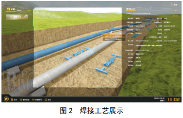 (2)可視化分析。通過(guò)虛擬仿真場(chǎng)景和真實(shí)數據相結合,對管道光纖預警信息、安防視頻監控信息、管道設施基礎信息、管道工藝展示信息、管道焊接工藝信息等集成展示,實(shí)現管網(wǎng)地上地下、管內管外、運行報警等數據實(shí)時(shí)綜合呈現。建立面向場(chǎng)景的信息歸集能力以及事件分析能力,實(shí)現管道運行維護管理、監測預警、分析決策的可視化、簡(jiǎn)單化、精細化、智能化,提高系統維護和管理的自動(dòng)化水平,具備協(xié)調運行能力及完善管理功能,實(shí)現功能集成、數據集成和管理界面集成。