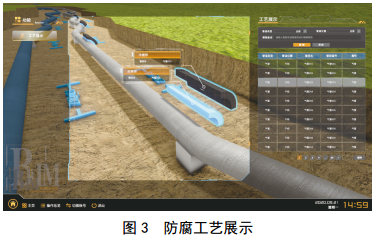 (1)涂層工藝展示。通過(guò)三維視圖方式展示管道管壁涂層工藝,管道涂層分層展開(kāi),逐層展示不同涂層材料信息。