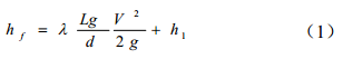 從圖 2可以看出,如果多重起伏管道投水排氣效果非常理想,在此過(guò)程中泵出口的最大阻力應該發(fā)生在水頭翻越靠后的高點(diǎn)時(shí)。其阻力包括沿程摩阻和翻越高點(diǎn)的靜壓力,如方程(1)所示。
