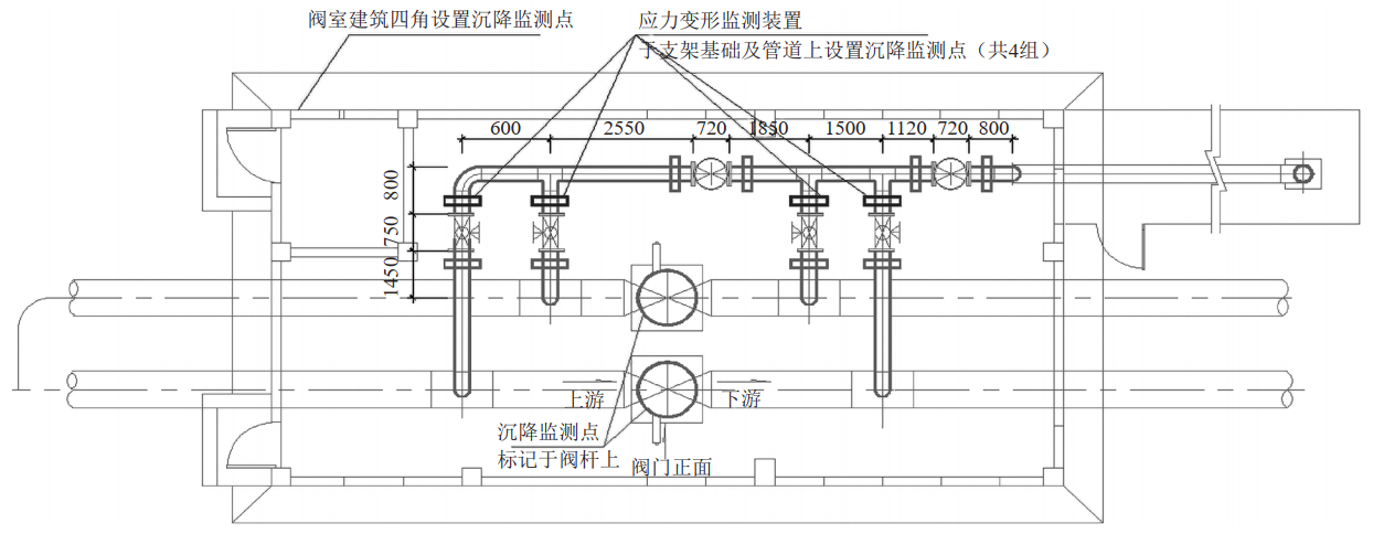 圖 2 閥室管道沉降監測裝置布置示意圖