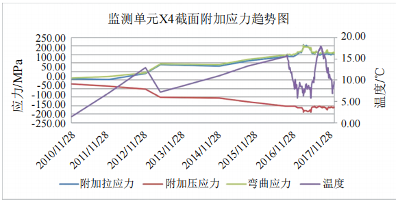 圖 3 X4 截面附加應力隨時(shí)間變化曲線(xiàn)