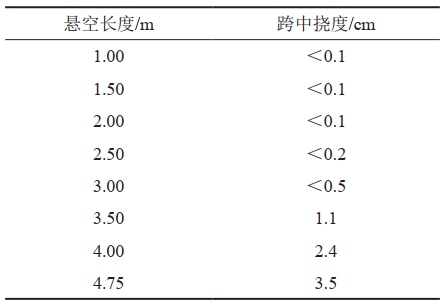 表 1 懸空長(cháng)度與跨中撓度關(guān)系
