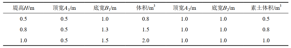 表 1 Ⅱ型草袋管堤工程量表(每延米長(cháng))