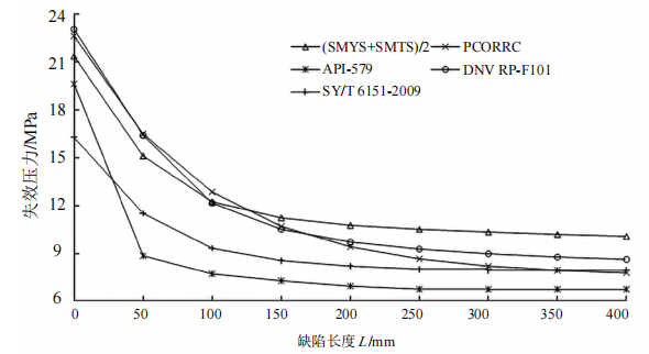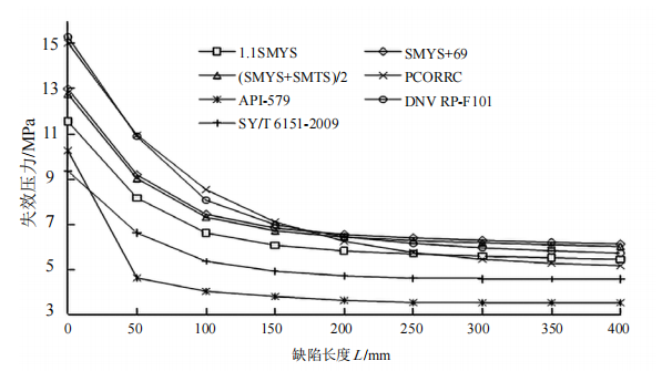 圖 3 X42管道失效壓力隨缺陷長(cháng)度L變化圖