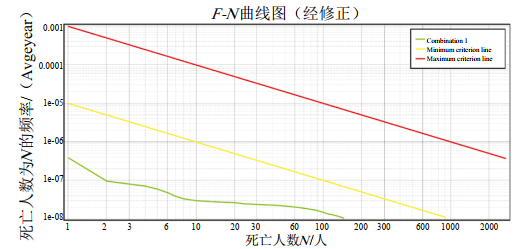 參照《危險化學(xué)品生產(chǎn)、儲存裝置個(gè)人可接受風(fēng)險標準和社會(huì )可接受風(fēng)險標準(試行)》,本項目為新建管道項目,眾合醫院高后果區為高敏感場(chǎng)所,其個(gè)人風(fēng)險可接受標準概率值不大于3×10-7;社會(huì )風(fēng)險可接受標準如圖 3所示。