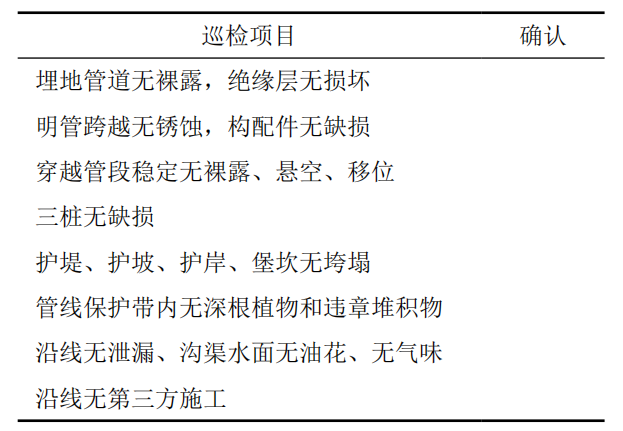 每個(gè)巡檢關(guān)鍵點(diǎn)設置巡檢注意項(表 1),一線(xiàn)巡線(xiàn)工到達關(guān)鍵點(diǎn)時(shí)移動(dòng)APP彈出巡檢注意項,需逐項核對消除,發(fā)現異常情況做好記錄并及時(shí)上報管段長(cháng)或部門(mén)技術(shù)員。