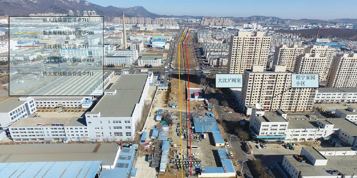 圖 1 大沈線(xiàn)、新大線(xiàn)等油氣管道穿越金普新區