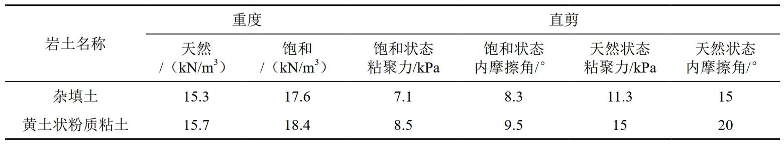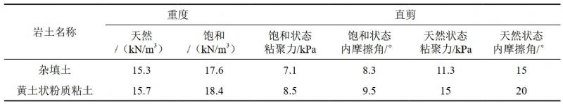 表 2 巖土體物理參數及抗剪強度參數綜合取值表