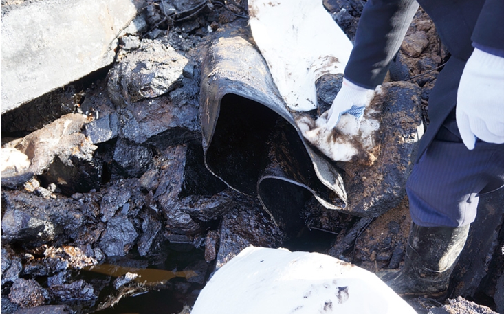 (a)地下延伸段被碾壓的管道
