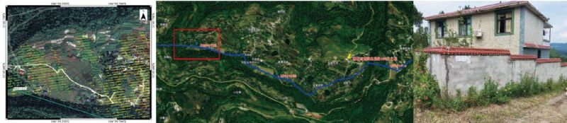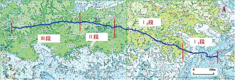 前期對川東北管道InSAR成果分析,管線(xiàn)兩側各一公里區域有58處出現變形,其中14處變形較大。結合收集到的沿線(xiàn)地質(zhì)災害點(diǎn)及發(fā)育規律,經(jīng)野外實(shí)地考察和驗證,發(fā)現地質(zhì)災害隱患點(diǎn)12處。同時(shí)將全線(xiàn)的地質(zhì)災害隱患按地層、巖性及主要誘因,劃分為滑坡型為主、工程建設導致次生災害型、滑坡崩塌共存三種類(lèi)型和四個(gè)區段(圖 1)。