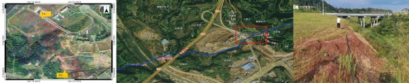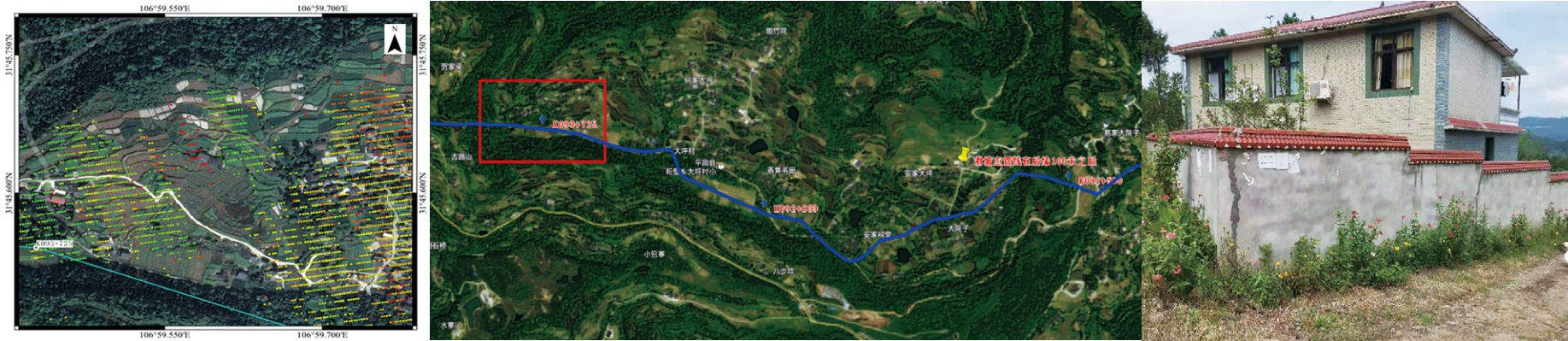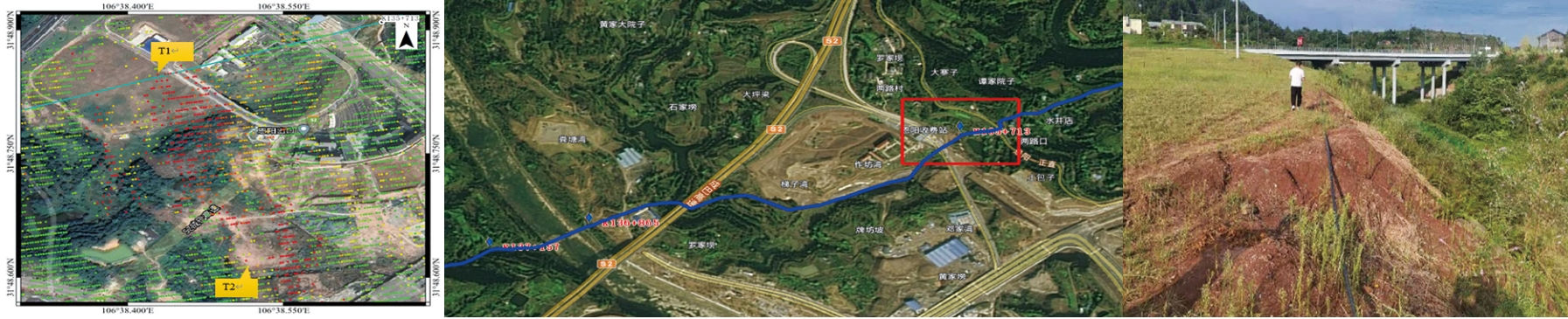 3 K093+725區段InSAR結果、光學(xué)影像及現場(chǎng)調查圖