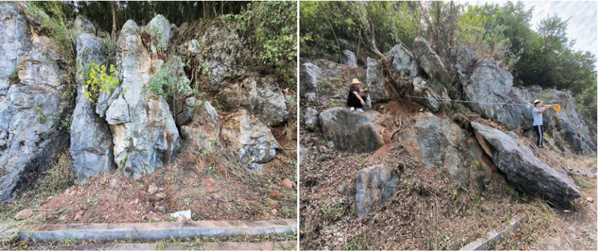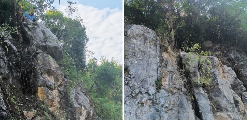 圖 2 危巖體清除前(左)后(右)現場(chǎng)圖