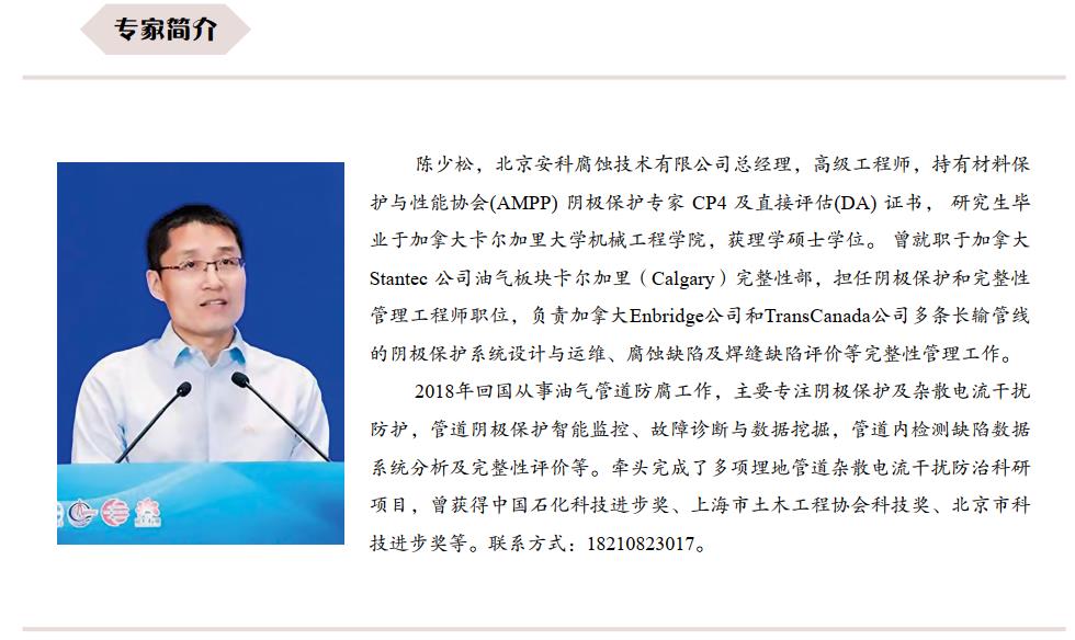 《管道保護》編輯部:習近平總書(shū)記在黨的二十大報告中強調指出“建設更高水平的平安中國,以新安全格局保障新發(fā)展格局”。埋地輸油氣管道工程與架空輸電線(xiàn)路工程同為大國重器,承擔著(zhù)維護國家能源安全和公共安全、保障人民群眾對清潔能源需求的重任。但管道與輸電線(xiàn)路相遇相交,受到了不同程度的雜散電流干擾,導致管道存在腐蝕風(fēng)險。為保障管網(wǎng)和電網(wǎng)安全運行,加強技術(shù)、管理等方面的工作,我們特別邀請到北京安科腐蝕技術(shù)有限公司總經(jīng)理陳少松,從埋地油氣管道受高壓輸電系統電磁干擾的影響、現狀、措施等多個(gè)角度進(jìn)行系統分析,提出相關(guān)建議,對做好管道腐蝕防護工作,提升我國管道本質(zhì)安全水平具有一定的借鑒意義。