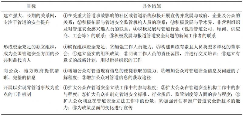 (1)完善公眾參與的管道保護機制。管道運營(yíng)商在法規和標準制定上具有一定的話(huà)語(yǔ)權,但公眾目前很少參與到法規和標準制定中。因此需要組建一個(gè)由社區、監管機構、非營(yíng)利組織、學(xué)術(shù)界和管道行業(yè)共同參與的管道保護組織,建立公眾參與的審查機制,制定共同的策略,解決相關(guān)方之間的利益糾紛,從而提高管道相關(guān)政策法規及政府監管的執行能力。