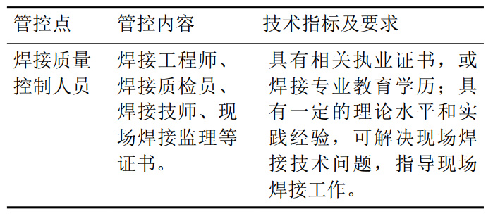 表 2 焊接質(zhì)量控制人員的質(zhì)量關(guān)鍵點(diǎn)