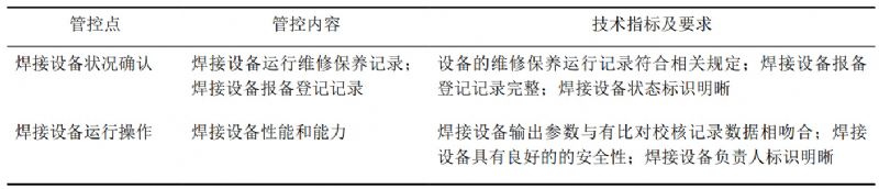 表 3 焊接設備的質(zhì)量關(guān)鍵點(diǎn)