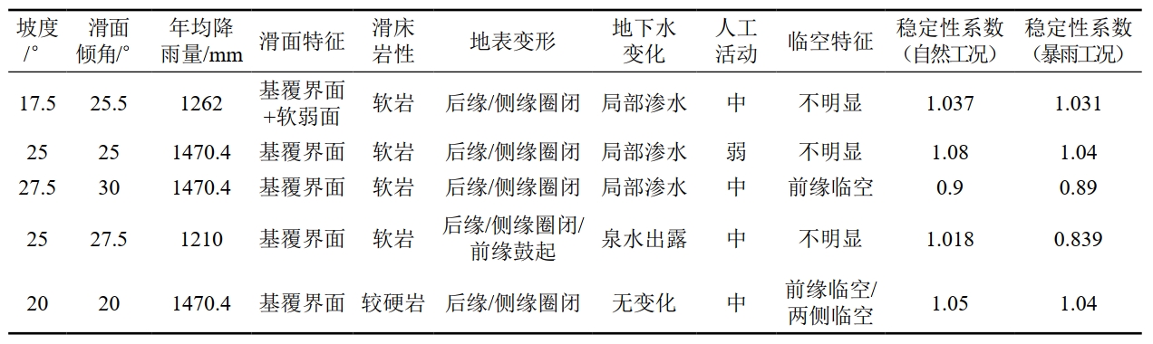 表 4 典型地質(zhì)災害點(diǎn)參數