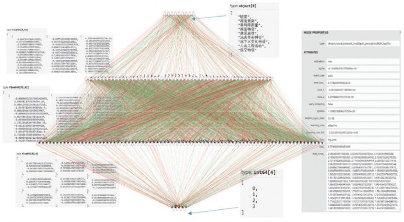 使用類(lèi)別等比例切分的訓練集和驗證集對模型進(jìn)行訓練和驗證,并獲得模型的評價(jià)結果。根據評價(jià)結果,使用編寫(xiě)的自動(dòng)優(yōu)化程序,不斷調整每個(gè)隱藏層中節點(diǎn)個(gè)數、懲罰系數、激活函數等參數,再進(jìn)行模型的訓練,最終獲得最優(yōu)的模型(圖 2、圖 3)。