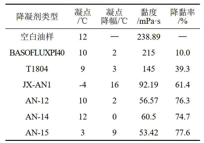 2 降凝劑初篩實(shí)驗結果