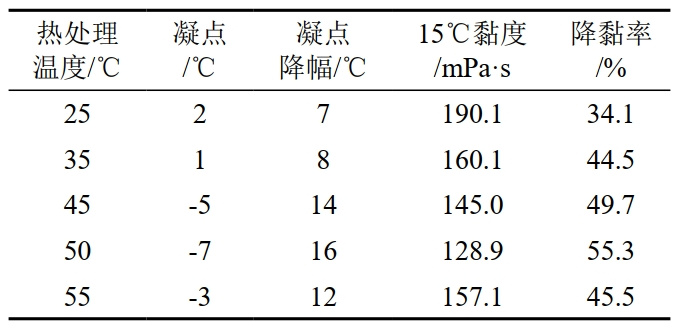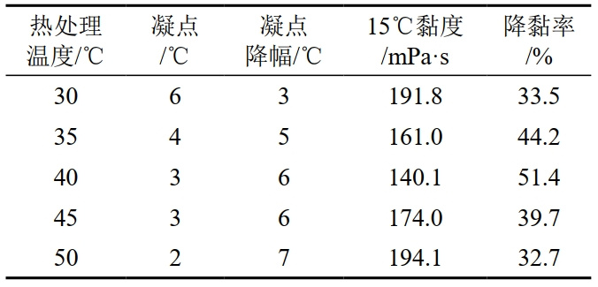 7 熱處理溫度對原油性質(zhì)的影響(加劑量50 ppm