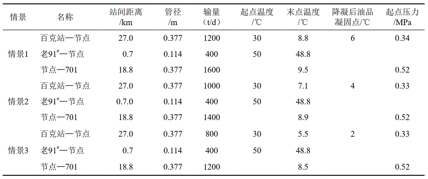 百克線(xiàn)主要輸送烏爾禾和百口泉井區的稀油,在27 km處匯入老91#稀油。隨著(zhù)百口泉井區、烏爾禾井區產(chǎn)量的降低,百克線(xiàn)將面臨低輸量運行。為避免因低輸量而造成凝管事故,需研究確定百克線(xiàn)的最低輸量及冬季的出站最低溫度。