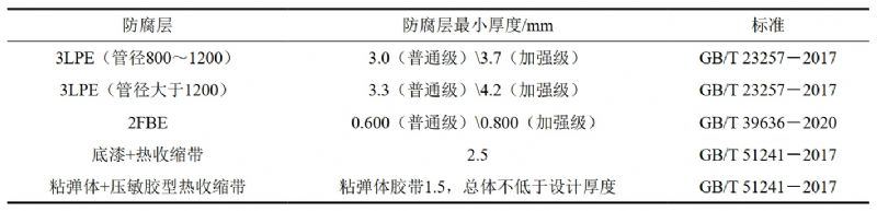 2 防腐層厚度要求