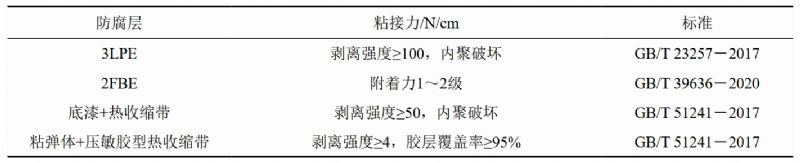 防腐層粘接力是保證防腐層質(zhì)量的重要因素,若防腐層粘接力不足,則容易出現防腐層剝離失效(表 3)。