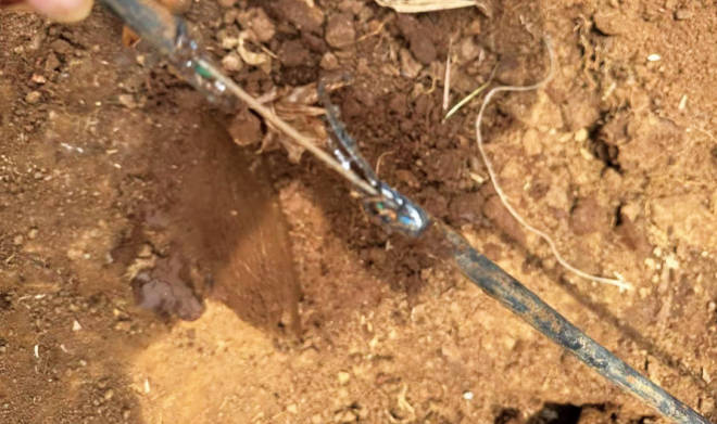2025年5月9日15點(diǎn)26分,調控中心和永新分輸站上位機出現蓮花合建站通信中斷的報警。經(jīng)排查,判斷通信故障點(diǎn)處于蓮花合建站至龍田閥室之間。永新分輸站立即啟動(dòng)應急響應,對蓮花合建站至龍田閥室段展開(kāi)地毯式搜索,地面未發(fā)現施工作業(yè)或地質(zhì)災害的跡象。嘗試在龍田閥室通過(guò)跳纖措施恢復通信,未能成功,初步斷定光纜已完全斷開(kāi)。公司立即組織人員采用OTDR(光時(shí)域反射儀)結合光纜路由智能定位儀,很快精準鎖定故障點(diǎn)位置,開(kāi)挖后證實(shí)硅芯管和光纜已被竹鼠啃咬殘缺不全(圖 2),隨即對該段硅管進(jìn)行更換并修復相應光纜,同時(shí)用角鋼包裹加以保護。