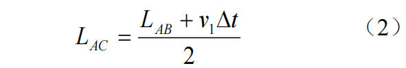 圖 1中原油管道長(cháng)度為L(cháng)AB,m;模擬泄漏點(diǎn)為C。泄漏點(diǎn)C產(chǎn)生的壓力波傳到首站A點(diǎn)的時(shí)刻設為 t1,s;傳到末站B點(diǎn)的時(shí)刻為 t2,s;已知原油管道的長(cháng)度和輸送的介質(zhì),忽略原油的黏度、溫度、流動(dòng)狀態(tài)等因素的影響,壓力波在原油中的傳播速度為 v1,m/s;原油在管道的流速為v2,m/s。則: