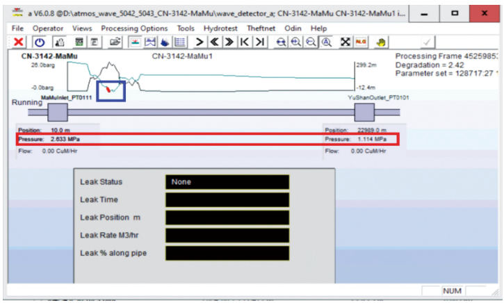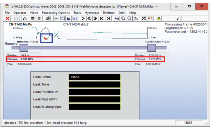 根據實(shí)際工況驗證了輸油管道模擬仿真的計算結果,如果輸油管道處于不滿(mǎn)流狀態(tài),管道中會(huì )有油氣混合物,在此種工況下一旦原油發(fā)生泄漏,油氣混合物區域會(huì )阻滯泄漏產(chǎn)生的壓降在管道中的傳播,進(jìn)而影響泄漏檢測系統的準確性,對系統性能產(chǎn)生一定的影響。根據實(shí)際情況,提出如下解決措施。