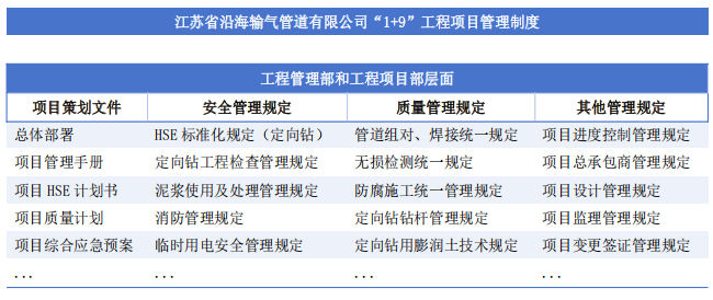長(cháng)輸管道作為戰略性基礎設施,其建設直接關(guān)系到國家能源安全和社會(huì )經(jīng)濟的發(fā)展。定向鉆穿越施工因對環(huán)境影響小,不會(huì )干擾路基、河床底部結構和條件,施工效率高等優(yōu)勢,在長(cháng)輸管道建設中得到廣泛應用。本文以江蘇沿海輸氣管道定向鉆工程管理為研究對象,通過(guò)構建管理體系,建立管理結構、落實(shí)管理責任、優(yōu)化管理流程、提升管理水平,確保定向鉆工程質(zhì)量和管道本質(zhì)安全,為江蘇省沿海管網(wǎng)建設規劃的順利實(shí)施提供有力的保障。