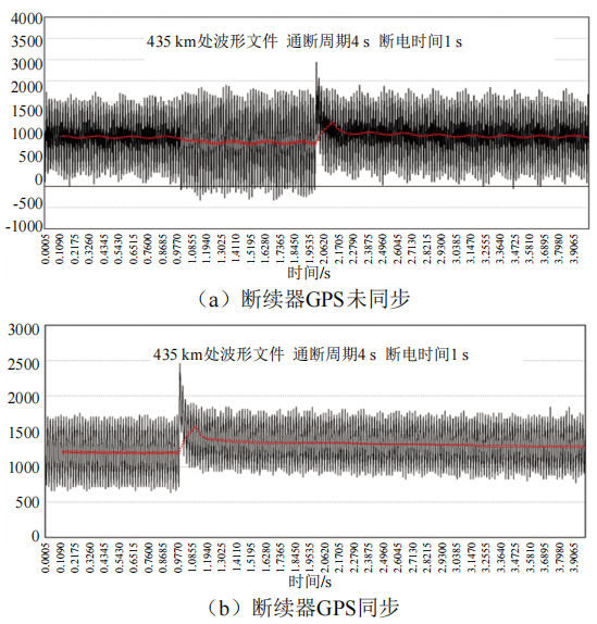 在管道沿線(xiàn)恒電位儀上加裝GPS同步斷續器,并使用CP-Thinker記錄儀采集管道沿線(xiàn)的電位波形,需確保全線(xiàn)斷續器及記錄儀GPS同步。若未實(shí)現同步,采集到的通斷電位將出現偏差,可能導致對管道陰極保護有效性的誤判。圖 1分別展示了斷續器GPS不同步和同步情況下的電位波形。