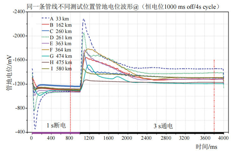 綜上,采用通斷電位法進(jìn)行測試時(shí),合理選擇通斷周期及延遲時(shí)間是確保數據準確的前提。