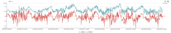 (2)潮汐加地磁干擾。在有地磁暴發(fā)生時(shí),一些高緯度沿海地區還可監測到地磁與潮汐的疊加干擾。2025年8月19日發(fā)生地磁暴期間,某管段電位圖除了有潮汐干擾的特征外,還受地磁暴影響電位持續波動(dòng)(圖 5)。